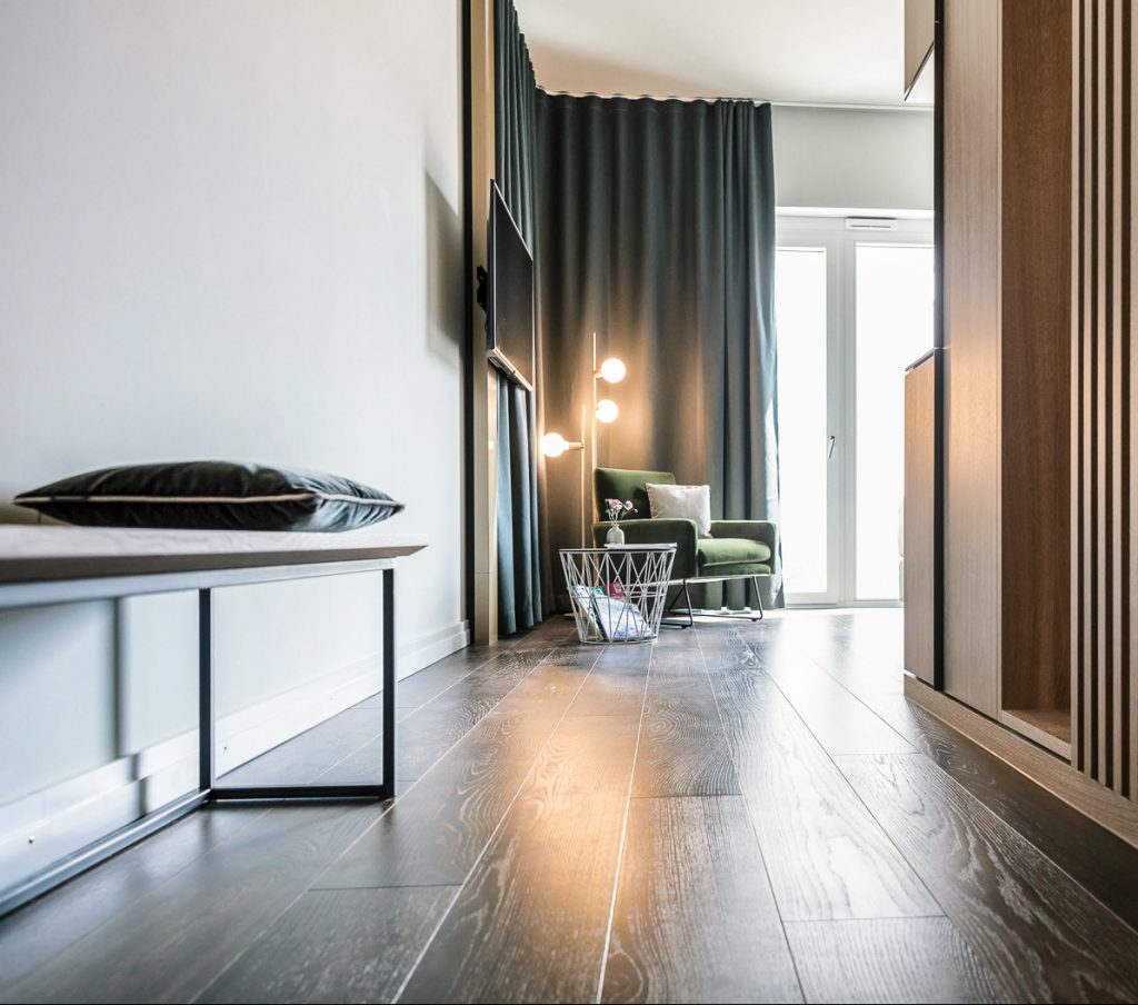 Durchatmen auf 41 bis 56 qm. In dieser Kategorie bieten alle Zimmer eine einladende Dachterrasse. Der großzügige Wohn- und Schlafbereich bietet bis zu drei Personen ausreichend Privatsphäre auf höchstem Niveau. Willkommen in Ihrem Zuhause unterwegs!