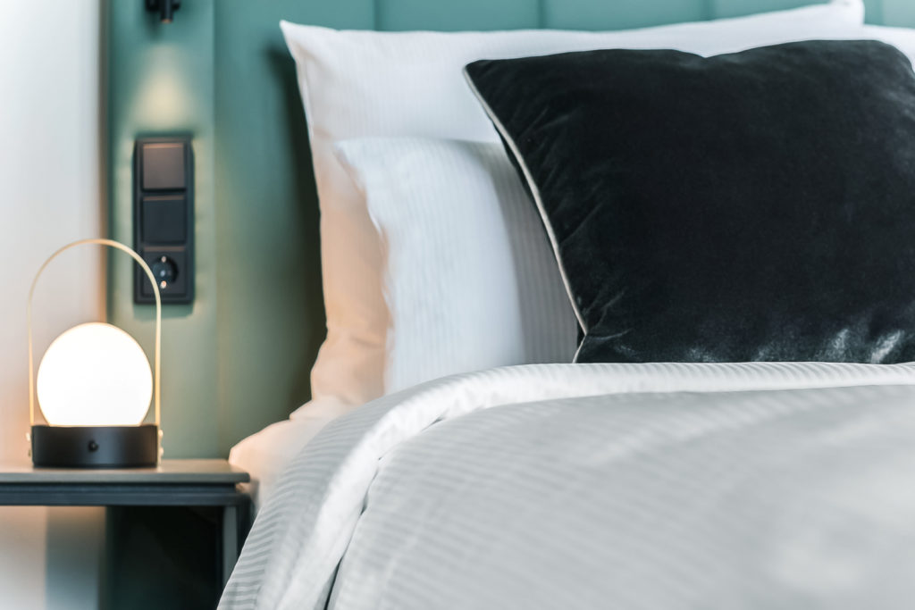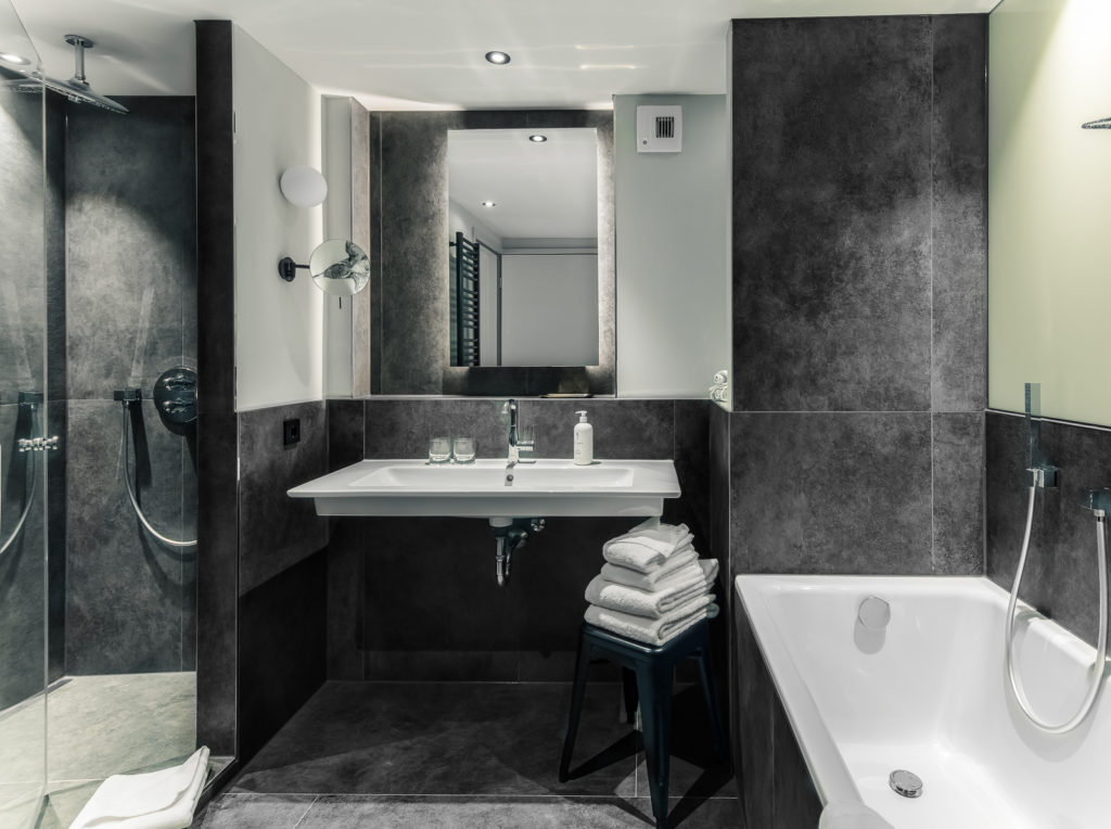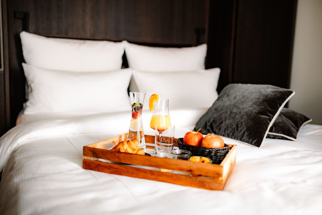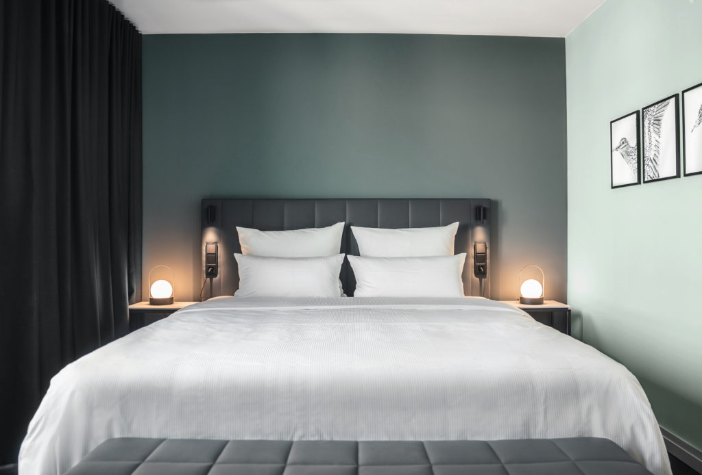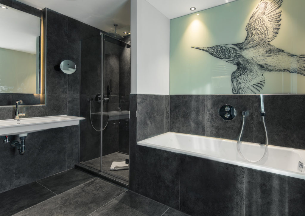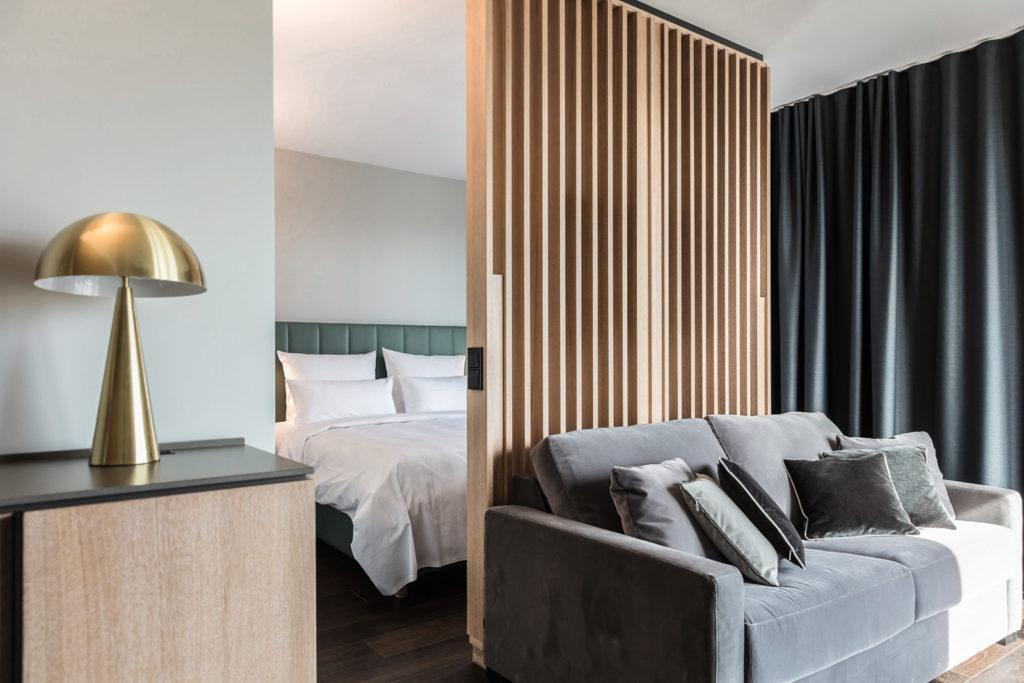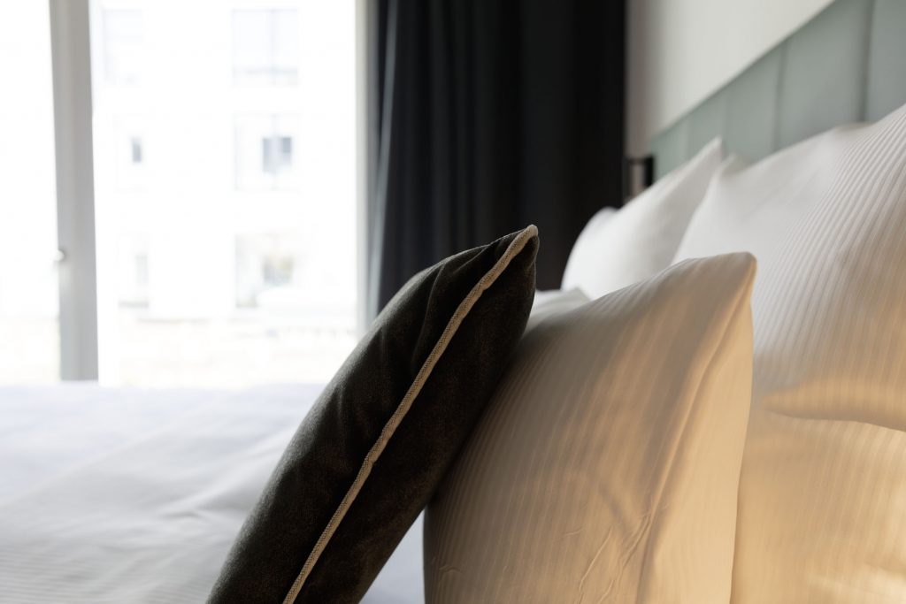 Ein Rückzugsort mit gesundem Anspruch. Der ideale Raum, um den Tag entspannt zu beenden und ihn ausgeruht zu beginnen. Ein komfortables Premium Boxspring Bett, nachhaltige Luxus Bettwaren und die großzügige Walk-in Dusche sorgen für angenehmen Komfort. Genießen Sie eine besondere Zeit.