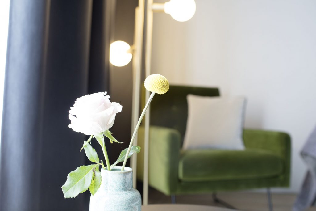 Gemütliches Wohnen in warmen Farben und natürlichen Materialien auf 23 qm. Das komfortable Boxspring Bett und die großzügige Walk-in Dusche sorgen für angenehmen Komfort. Perfekt geeignet für Ihren kurzen Aufenthalt!