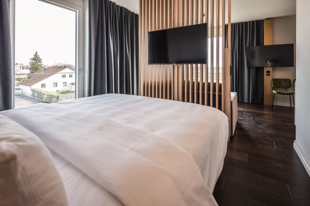 Das Soller Business Hotel empfängt Sie mit 123 Zimmer in Ruhe und Gelassenheit. Die fünf Zimmerkategorien bieten ausreichend Raum für Ihre Bedürfnisse: von 23 qm bis 83 qm finden Sie hier den perfekten Rückzugsort alleine, zu Zweit oder mit der ganzen Familie. Genießen Sie die besondere Aura der Räume, die angenehme Lichtstimmung, erzeugt durch die offene gestalteten Lamellenelemente. Hochwertige Eicheneinbauten, geölte Holzböden und das warme Farbkonzept vermitteln ein behagliches Wohngefühl, inspiriert von der Natur des Erdinger Moos. Die junior Suiten und Suiten im dritten Obergeschoss begeistern mit großzügiger Dachterrasse.