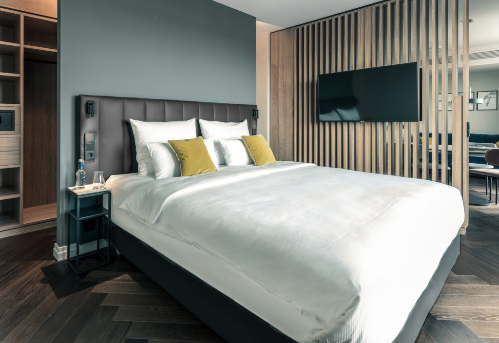 Raum für noch mehr Gemütlichkeit auf bis zu 32 qm. Der ideale Rückzugsort für Businesstreibende. Das komfortable Boxspring Bett und die Walk-in Dusche versprechen angenehmen Komfort, der für unsere Geschäftsreisenden Gäste eingerichtete Schreibtisch ermöglicht die Erledigung kurzfristiger Aufgaben und Meetings selbst im Hotelzimmer. Genießen Sie Ihren Business-Trip in vollen Zügen!